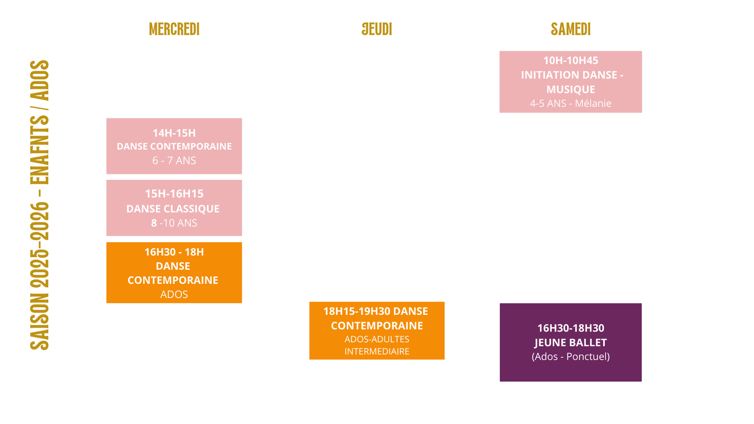 • Et, selon le thème : des séances de maquillage / costumes de scène, histoire de la danse, anatomie, danse en anglais, etc.